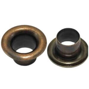 / Fivelas e ilhoses em latão com acabamento premium